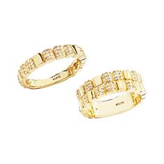 マイクロメレダイヤモンドを直線的に配し、エレガントですっきりとした佇まいになるようなサイズ感にこだわったバーモチーフのネックレスとブレスレット。